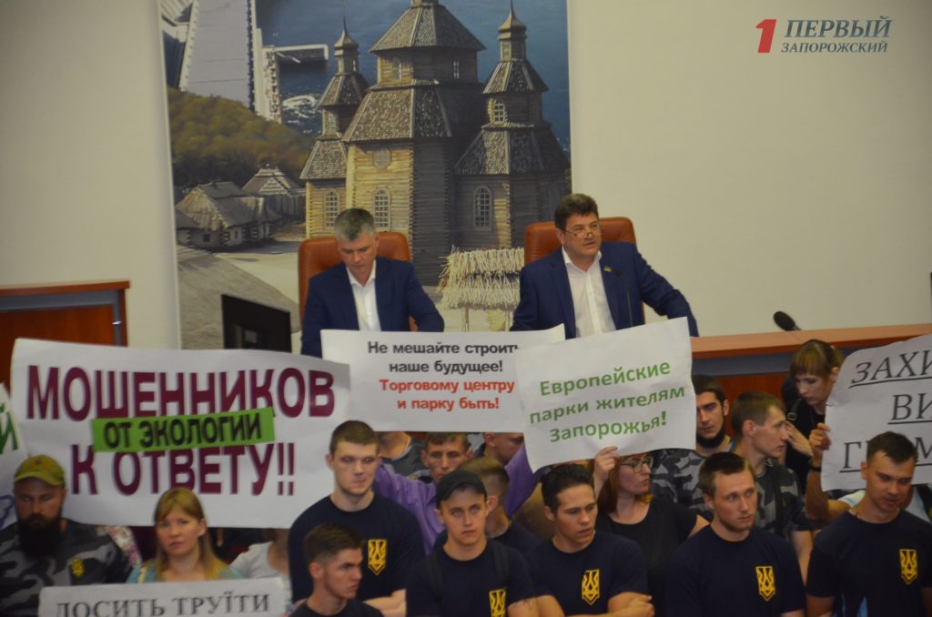 Перед началом сессии общественные активисты из числа сторонников Кальцева, защитников парка Яланского и «Нацкорпуса» оккупирровали трибуну городского совета и вступили в переговоры с мэром города касательно идеи скандального строительства торгового центра. После получасовой задержки Владимир Буряк объявил об открытии сессии и пообещал дать слово каждой из противодействующих сторон.