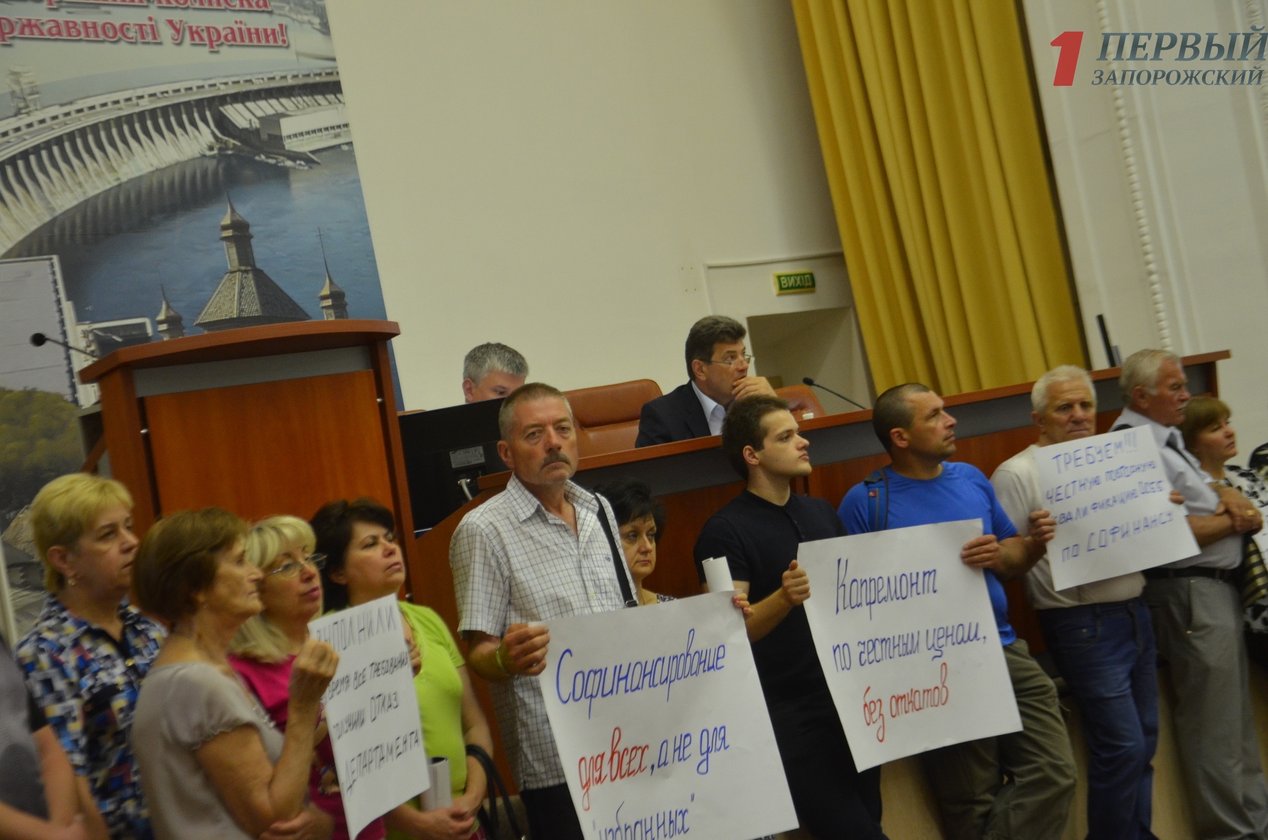 Кроме этого на сессию так и не был включен вопрос о внесении изменений в «Порядок проведения капитальных ремонтов жилых домов на условиях софинансирования» жильцов с городским бюджетом, хотя около двух десятков активистов пришли на сессию с плакатами и просьбой помочь с капремонтами.