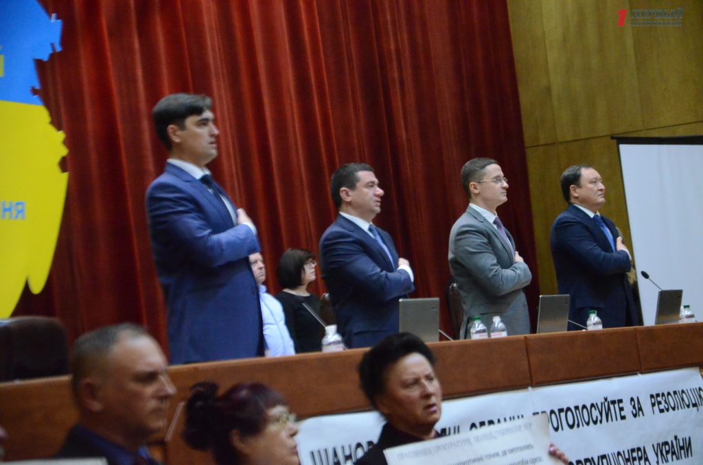 Напомним, что перед началом сессии глава фракции БПП в облсовете Эдуард Гугнин пообещал покинуть зал совместно со своими однопартийцами из-за скандального лозунга соратников Саакашвили.