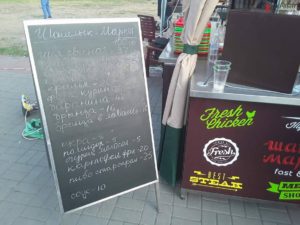 Цены на представленную продукцию для одних «кусались», а для вторых были «адекватными». За бургер запорожцы отдавали от 65 до 80 гривен. Порция плова обошлась в 70 гривен. Обычную шаурму нам сделали за 50 гривен, а за 100 грамм шашлыка пришлось выложить 37 гривен.