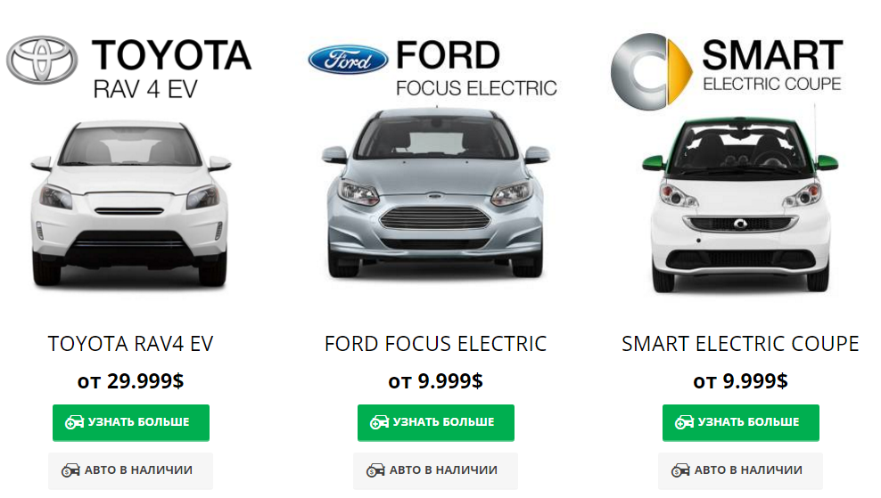 Электромобиль в минимальной комплектации стоит в среднем от 10 тысяч долларов (Nissan, Ford и Smart) и выше.
