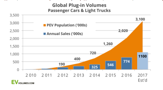 Мировые продажи легковых электромобилей и подключаемых гибридов в 2016 году составили 774 тысяч единиц с ростом в 42% к 2015 и долей 0,86%. К концу 2016 года общее количество электромобилей в мире превысило 2 миллиона, сообщает GTM.