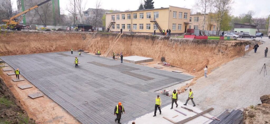 «Строим противорадиационное укрытие. В нем будет три входа и два лифта для людей с инвалидностью. Уже сделали подстилающий слой, раскладываем нижнюю армированную сетку. Вскоре приступим к заливке бетоном нижней плиты убежища», — сообщил прораб Юрий Яценко.
