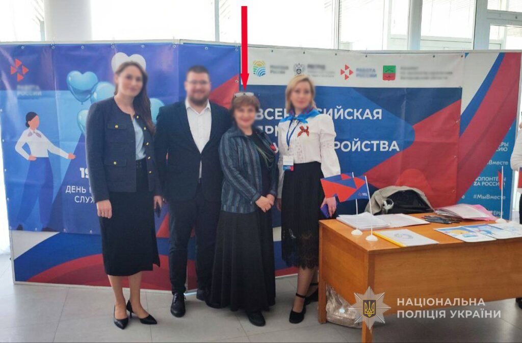 Коллаборантка представляет интересы оккупантов, а также активно сотрудничает с ними для внедрения российских стандартов в сфере торговли на захваченной территории.