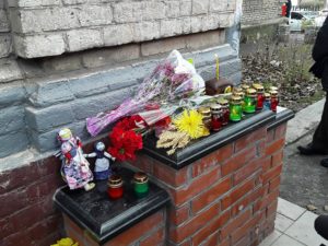 Первый митинг-реквием состоялся сегодня на улице Александровской. Представители «Национального корпуса», «Свободы», «Правого сектора» и неравнодушные горожане почтили память заморенных голодом детишек.