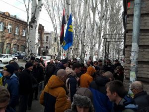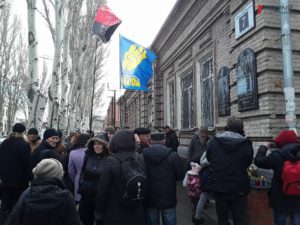 Среди нескольких десятков участников митинга, внимание «Первого Запорожского» привлекла немалоизвестная активистка Валентина Рожко.