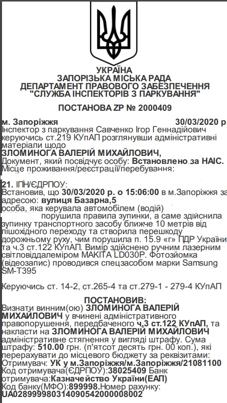 Бердянский городской районный суд рассмотрел иск о привлечении к административной ответственности водителя коммунального учреждения «Запорожский областной центр матери и ребенка».
