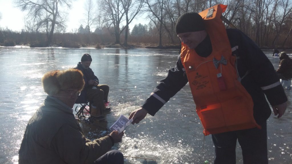 Во время рейда спасатели обнаружили на льду 50 любителей зимней рыбалки. Сотрудники госслужбы напомнили им основные правила поведения на воде в зимний период и раздали информационные листовки об опасности тонкого льда.