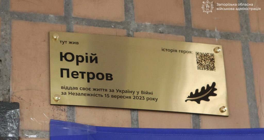 Запорожец Юрий Петров погиб в сентябре 2023 года в бою в Донецкой области. Через два года на доме, где жил защитник, установили мемориальную доску в его честь.