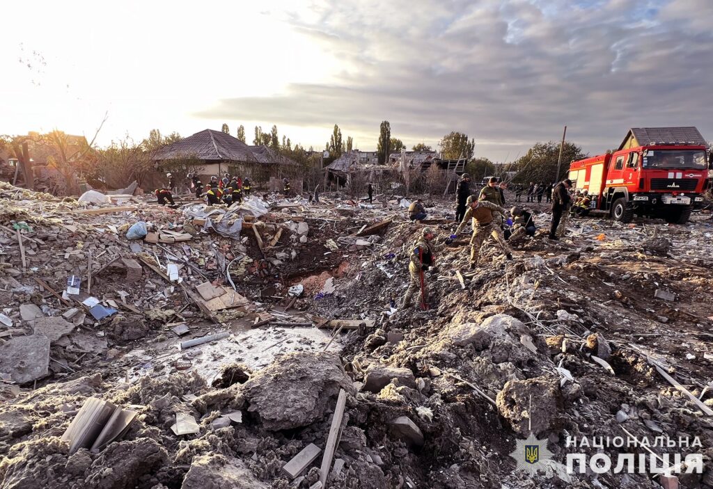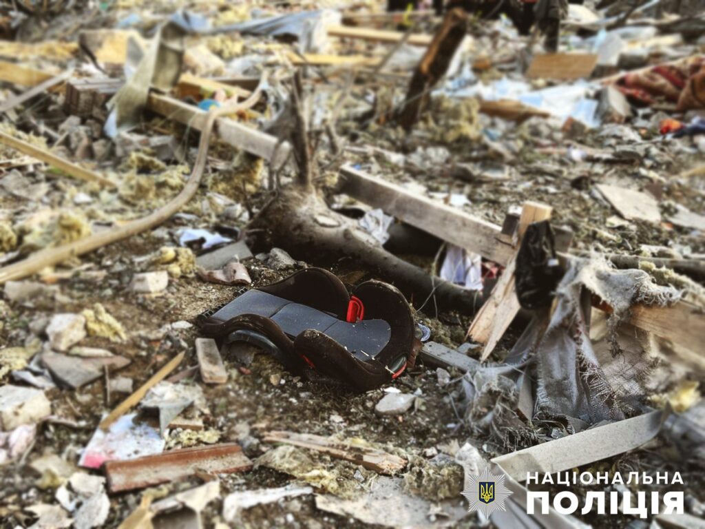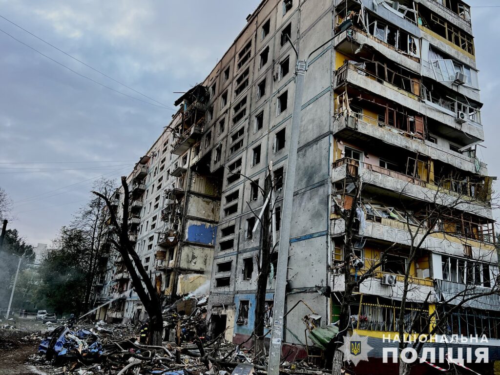 В результате прямых попаданий ракет в девятиэтажке произошло разрушение жилищной конструкции с первого по седьмой этаж. Во время разбора руин обрушились и другие два этажа. В настоящее время продолжаются спасательно-поисковые работы, людей достают из-под завалов.