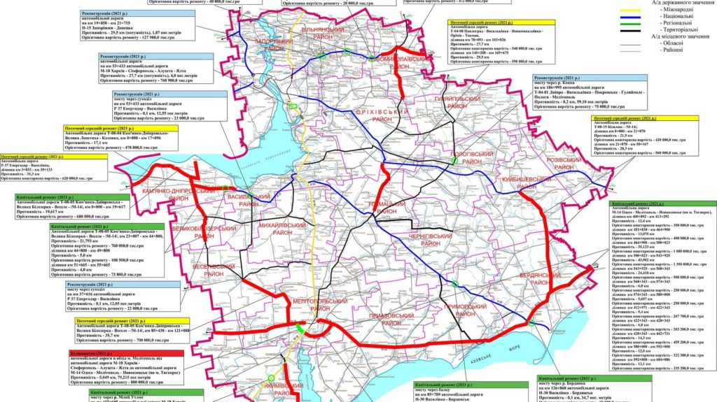 Стало известно, какие трассы в Запорожской области будут ремонтировать в 2021 году, – СХЕМА