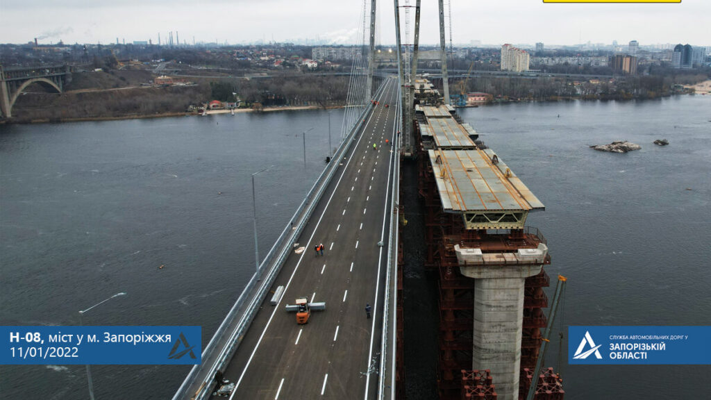 В Запорожье движение по верховой части вантового моста планируют запустить в День Соборности Украины – 22 января.