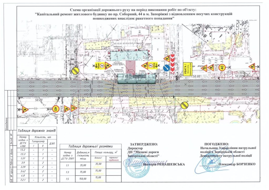 В мае этого года был объявлен тендер на восстановление многоэтажки на проспекте Соборном, 44. Подрядчик уже начал работы, в частности, проводит демонтажные работы. После чего работники начнут восстановление разрушенных несущих конструкций, а также усилит существующие. Подрядчик также должен отстроить стены и лестницы дома, провести отделку фасада и крыльца, заменить кровлю и окна, а также благоустроить прилегающую территорию.