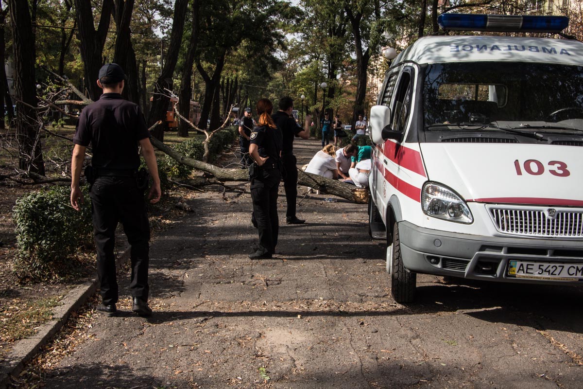 Так, на проспекте Дмитрия Яворницкого ветка сухого дерева упала на 21-летнюю девушку. Спасти жизнь пострадавшей не удалось, сообщает Информатор.
