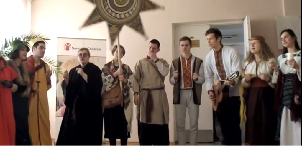 Патриотически настроенные молодые люди пели песни и провозглашали стихи в колоритных украинских костюмах .Цель этого мероприятия – возрождение украинских традиций.
