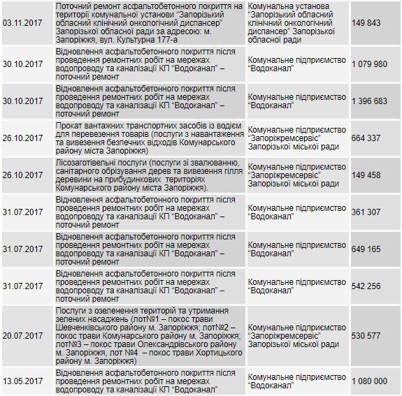 Предыдущие два тендера УКСа, которые проходили весной, «провалились» якобы по вине участников, подававших документы не в соответствии с тендерной документацией. Третий тендер провели уже по ускоренной процедуре. На конкурс заявились три фирмы: запорожская ТЛС «Єдність», которая в прошлом году получила от УКСа несколько заказов общей суммой в 600 тысяч гривен, еще одна запорожская фирма «Системный инновационный сервис – Запорожье», которая осуществляла подряды в крупных предприятиях города и столичная строительная компания «Евробудгруп», которая также проводила ряд строительных работ на нескольких крупных предприятиях города. В итоге победителем признали строительную компанию «Евробуд», зарегистрированую в Киеве лишь в конце 2015 года и оформленную на жительницу Макеевки Ольгу Вахитову. «Єдність» же подготовила несколько справок не за формой и тендерный комитет отклонил ее заявку, хотя фирма предложила самую низкую цену.