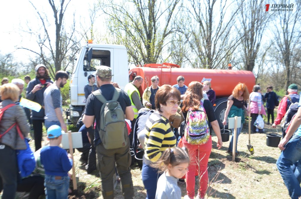 По нашим подсчетам, в экоакции приняли участие более тысячи запорожцев и гостей города, которые общими усилиями высадили на острове более двух тысяч дубов. К благородной мисиии по озеленению присоединились делегации из Черкасс, Херсона, Мариуполя и других городов со всей Украины, а также родные бойцов, погибших в зоне АТО.