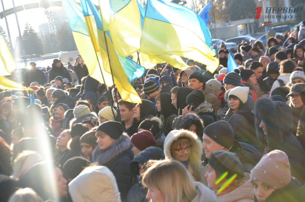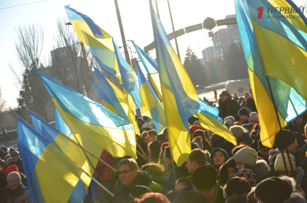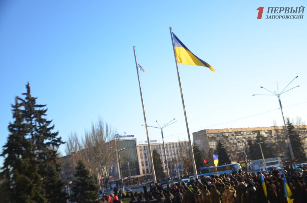 Сегодня, 29 ноября, на площади Героев перед Запорожской ОГА собрались тысячи запорожцев на торжественную церемонию поднятия флага Военно-Морских Сил Украины.