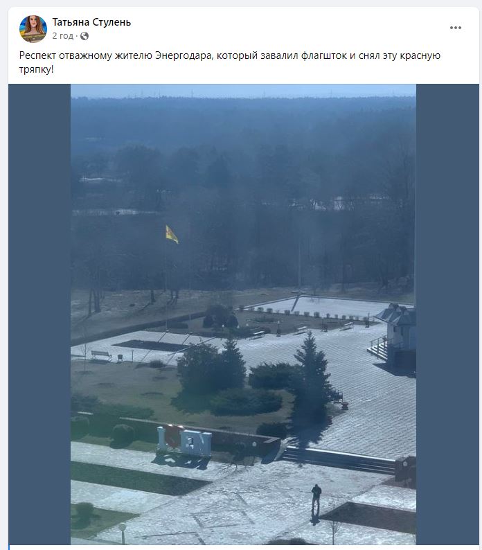 Так, жительница Энергодара рассказала, что в городе повалили флагшток, на который оккупанты решили повесить флаг с коммунистической символикой: