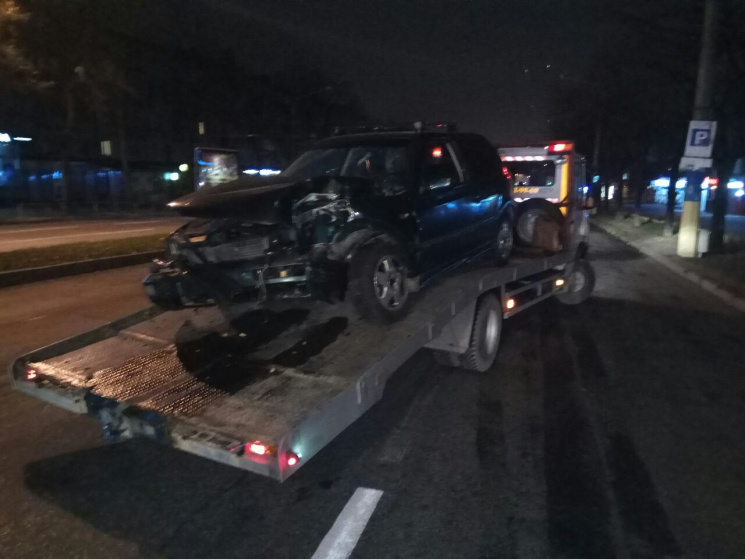 Сьогодні, 9 листопада, вночі між зупинками «площа Фестивальна» та «ТЦ Україна» водій Volkswagen Golf не впорався з керуванням і врізався в стовп.