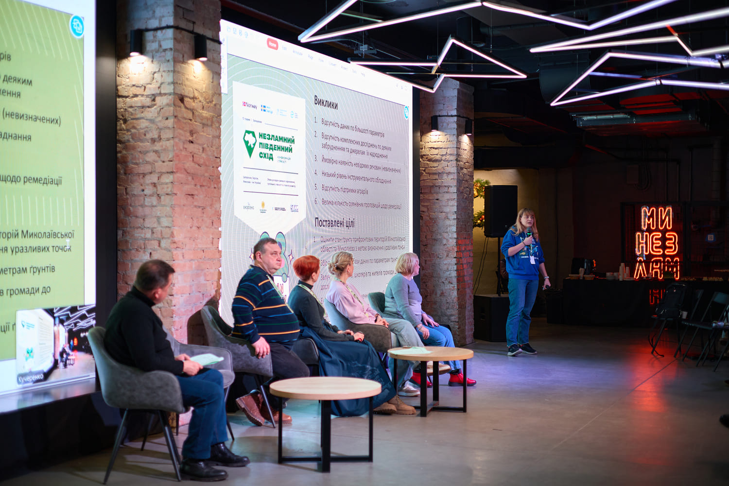 Доцент кафедры садово-паркового хозяйства и экологии Луганского национального университета имени Тараса Шевченко, сопредседатель Национального экологического центра в Николаевской области Инна Тимченко, рассказывая о практике устойчивого развития громад Юго-Востока в условиях войны и изменения климата, сосредоточилась на проблеме загрязнения почв и их ремедиации в условиях войны.