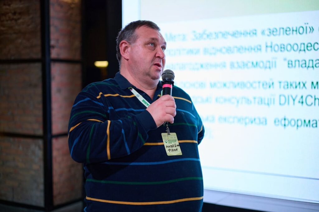 Директор общественной организации «Фонд развития Николаева» Михаил Золотухин в своем выступлении во время дискуссии на тему практик устойчивого развития громад Юго-Востока подчеркнул, что вопрос экологической безопасности невозможно решить без непосредственного участия жителей громад: «Главным риском развития громад является игнорирование человека. Поэтому цель наших проектов — это формирование зеленой повестки дня восстановления громад на основе механизмов демократии участия».