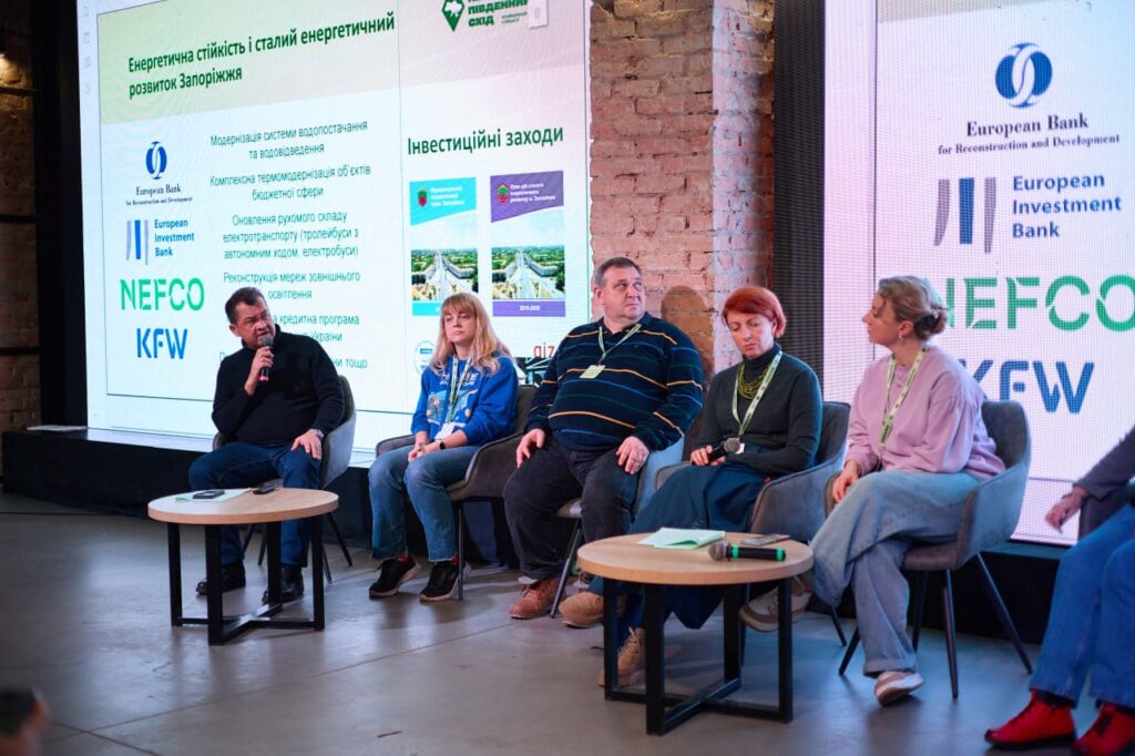 В рамках обсуждения «Практики устойчивого развития громад Юго-Востока в условиях войны и изменения климата» эксперты поделились практическими примерами восстановления громад, обсуждали энергетическую стабильность, экологическую безопасность и механизмы привлечения жителей к стратегическому планированию.