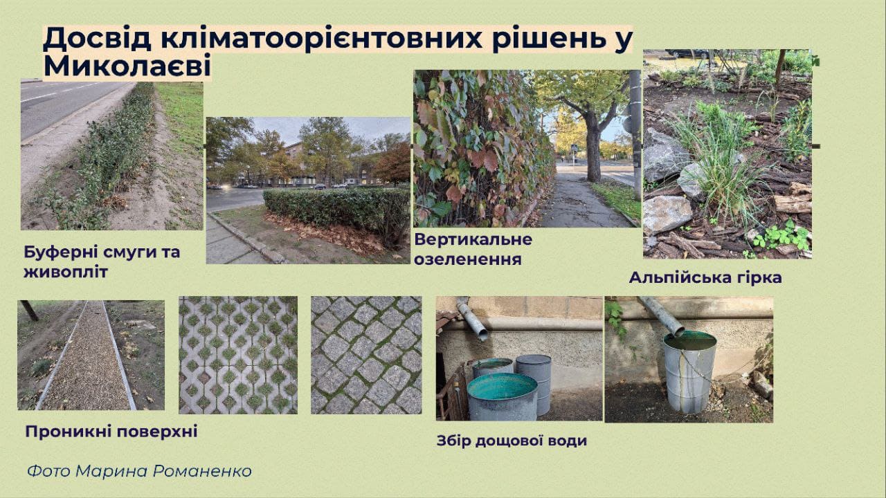 В качестве примера локального проявления климатического кризиса Диана Крысинская вспомнила Николаев, где с 1960 года среднегодовая температура уже выросла более чем на 2 °C. Она отметила, что город переживает длительные периоды без осадков, критическое сокращение количества снега и деградацию зеленых зон, что приводит к высыханию деревьев, пылевым бурям и потере среды обитания для живых организмов.