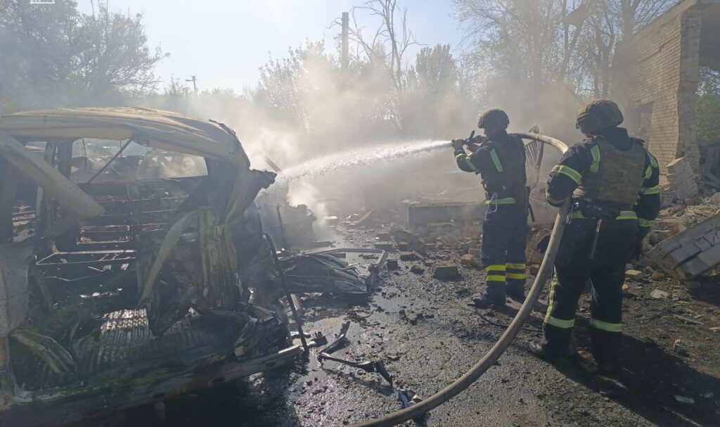 В результате российской атаки загорелось складское помещение, уничтожено девять транспортных средств, еще несколько автомобилей повреждено.