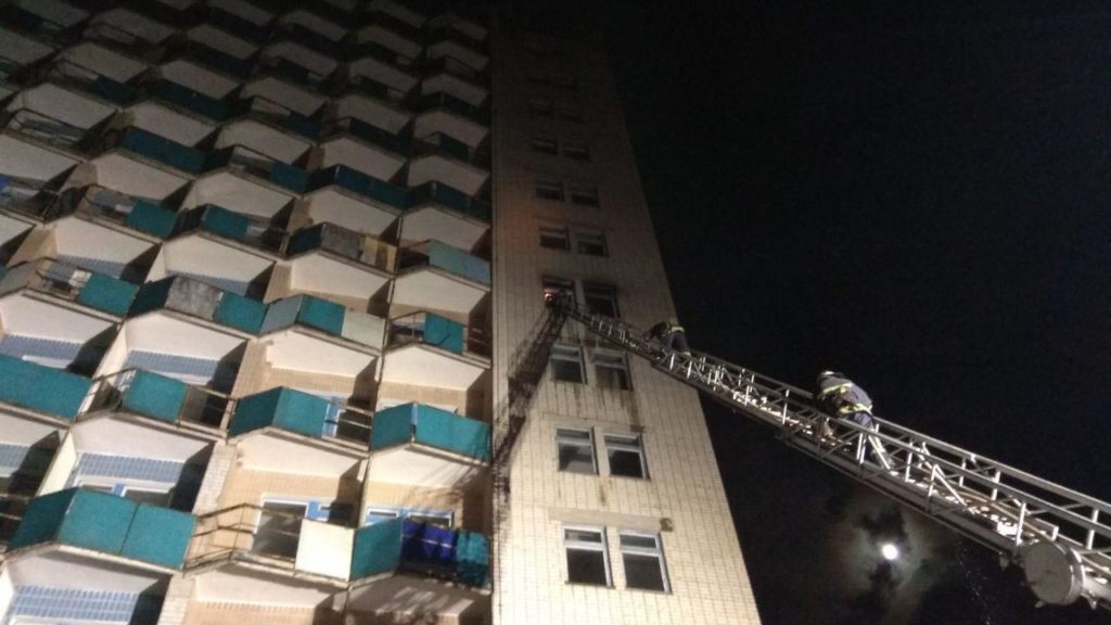Прибыв на место происшествия, спасатели установили, что на седьмом этаже 12-ти этажного неэксплуатируемого кирпичного дома горят мебель и постельные принадлежности.