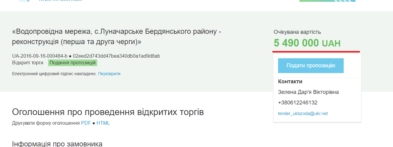 Об этом стало известно благодаря системе электронных закупок «Prozzoro». Обьявление о закупке появилось на сайте вчера, 16 сентября. Проведение самого аукциона запланировано на 4 октября. Заказчиком работ выступило Управление капитального строительства Запорожской облгосадминистрации.