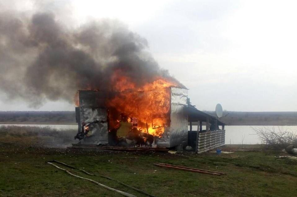 В Бердянском районе на берегу пруда пылало чье-то деревянное сооружение, — ФОТО