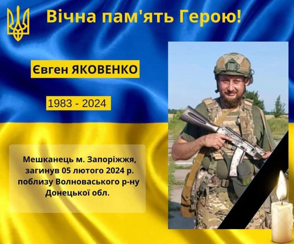 Житель Запорожья два года мужественно защищал украинскую землю от российских захватчиков. 5 февраля Евгений Яковенко получил ранения не совместимые с жизнью.