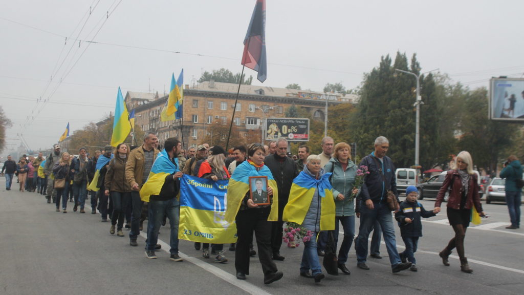 Участниками шествия стали запорожские ветераны АТО, волонтеры, семьи погибших военнослужащих, а также все желающие жители города.