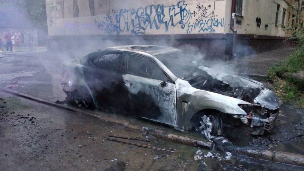 Сегодня в пять утра на улице Михаила Гончаренка произошло возгорание элитной машины.