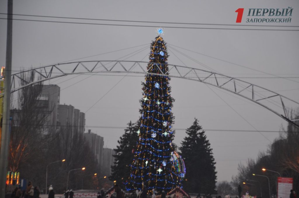 Главным атрибутом площади стала новогодняя елка. Ее украшают игрушки, которые сделали своими руками дети из школ-интернатов. Также на площади установили большой светящейся шар и миниатюрную модель историко-культурного комплекса «Запорожская Сечь».