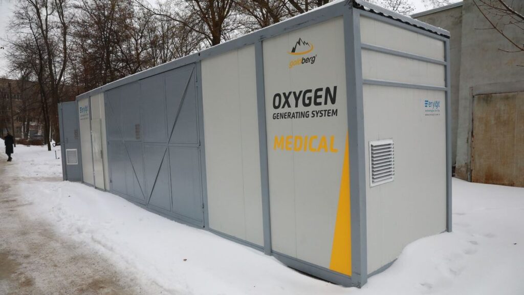 9-я горбольница стала одним из первых медучреждений, которая получила автономную кислородную станцию с контейнером для бесперебойного обеспечения кислородом больных ковидом.