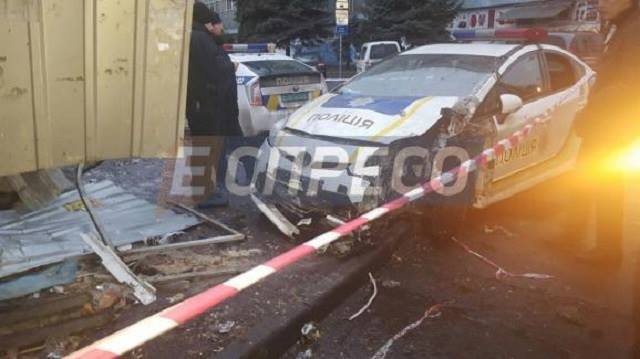 В Киеве полицейский Приус разнес хлебный киоск - ФОТО