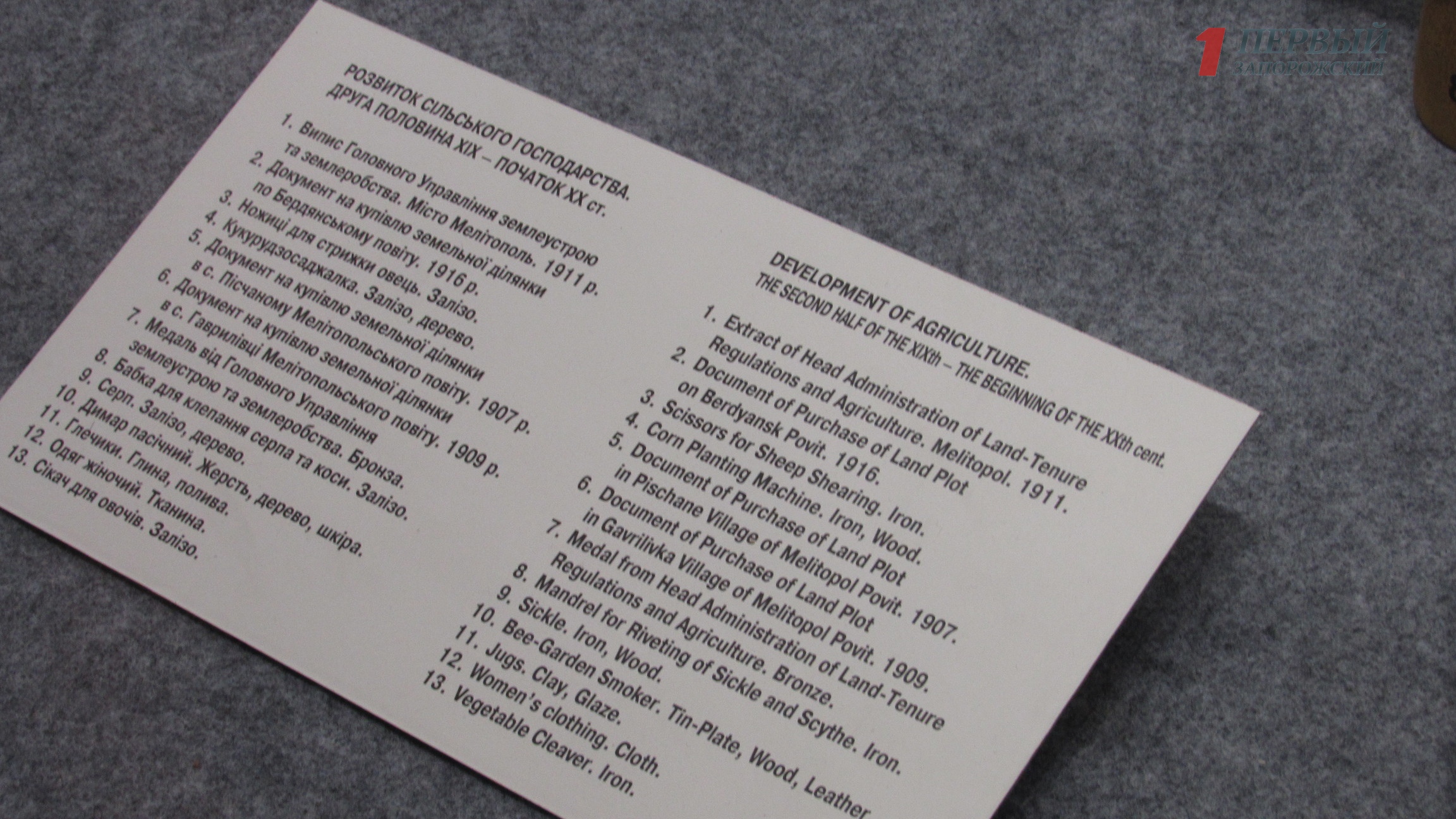 На выставке представлены более 1500 экспонатов, которые рассказывают о жизни жителей Запорожской области в начале прошлого века.