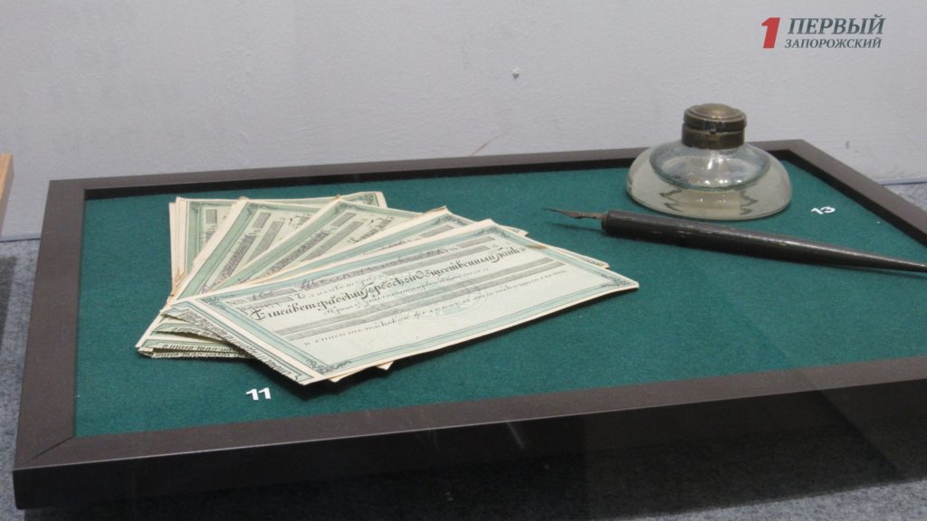 — Эта выставка посвящена экономике Запорожского края в конце 19 -го – начале 20 столетия. Это очень интересный период, поскольку именно в это время бурно развивается промышленность и экономика: появляются первые железнодорожные поезда, активно развиваются предприятия, которые расположены сейчас в старой части города. Посетители могут проследить и увидеть, как развивались множество нынешних заводов и фабрик. Мы сделали основное ударение не на документах и фотографиях, а на реальных предметах. Больше всего мне нравится витрина, которая рассказывает о торговле – здесь можно увидеть, чем торговли раньше, что пользовалось спросом, как взвешивали товар и многое другое, — рассказал директор краеведческого музея Михаил Мордовский.