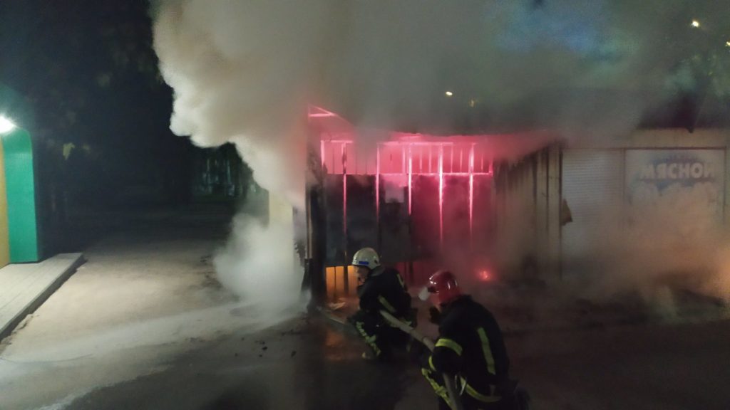 Сегодня ночью в Мелитополе спасатели тушили горящие киоски.