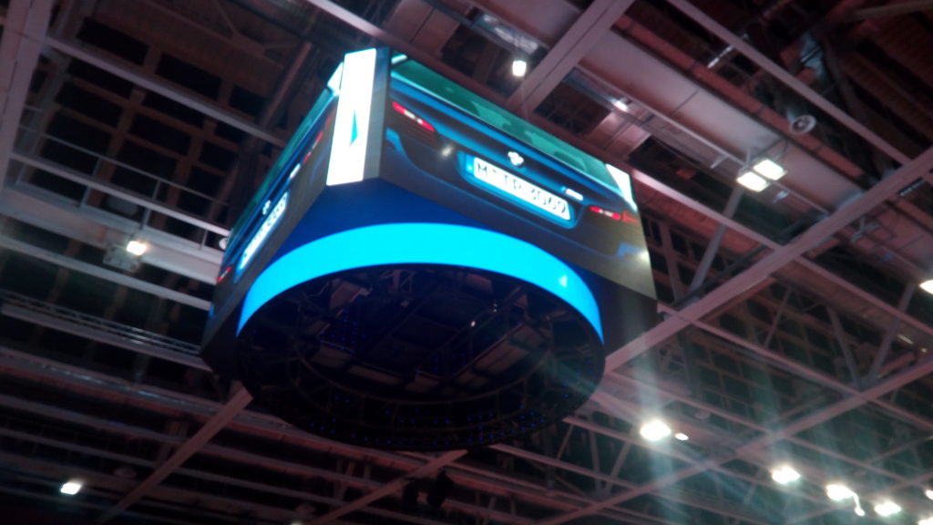 Речь о покупке медиакуба и информационных табло велась еще с прошлого года. Теперь же обещанный четырехсторонний экран — подвешен под потолком над центром площадки. Высота, на которой находится куб, — более 7 метров от площадки до нижней части куба — соответствует всем требованиям для проведения соревнований по гандболу, баскетболу, футзалу, хоккею и многим другим видам спорта. Медиакуб можно спокойно снять и тогда на арене также можно проводить волейбольные поединки.