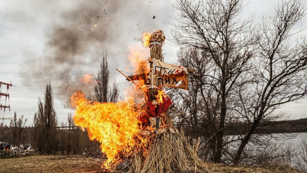Запорожец Дура Скала вместе с единомышленниками подожгли чучела, символизирующие президента Путина и президента Беларуси Александра Лукашенко. Это сделали в честь последнего дня славянского праздника Масленицы, который обычно празднуют пышно: с хороводами, приготовлением блинов и т.д.