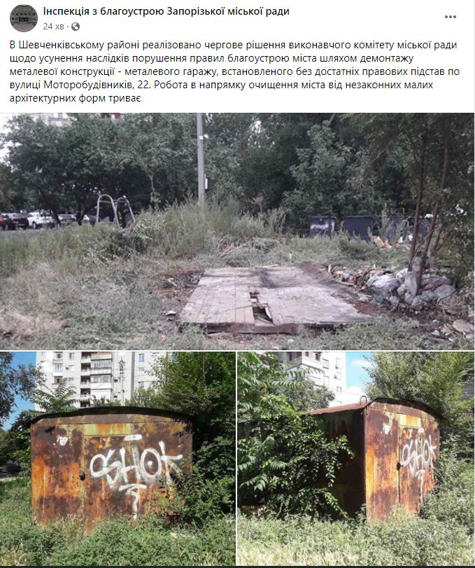 На странице инспекции по благоустройству горсовета Запорожья рассказали о демонтаже гаража.