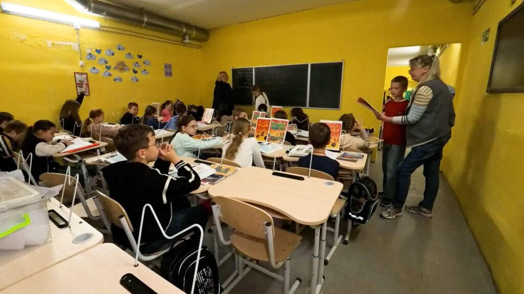 В одной из гимназий Коммунарского района Запорожья продолжается офлайн-обучение. Классы разместились в простейшем укрытии.