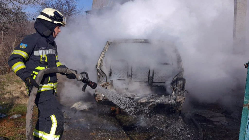 Вчера, 15 февраля, в поселке городского типа Кушугум пылал автомобиль. На месте работали семь спасателей.
