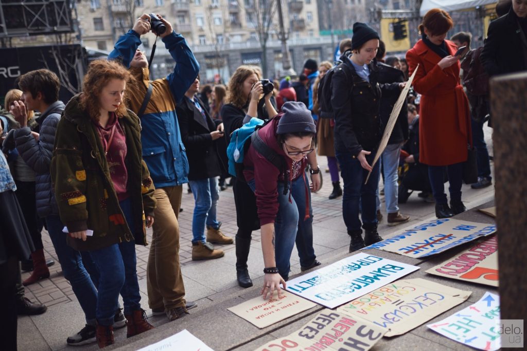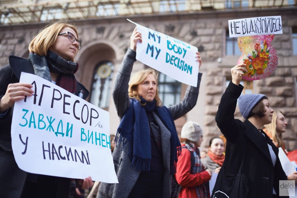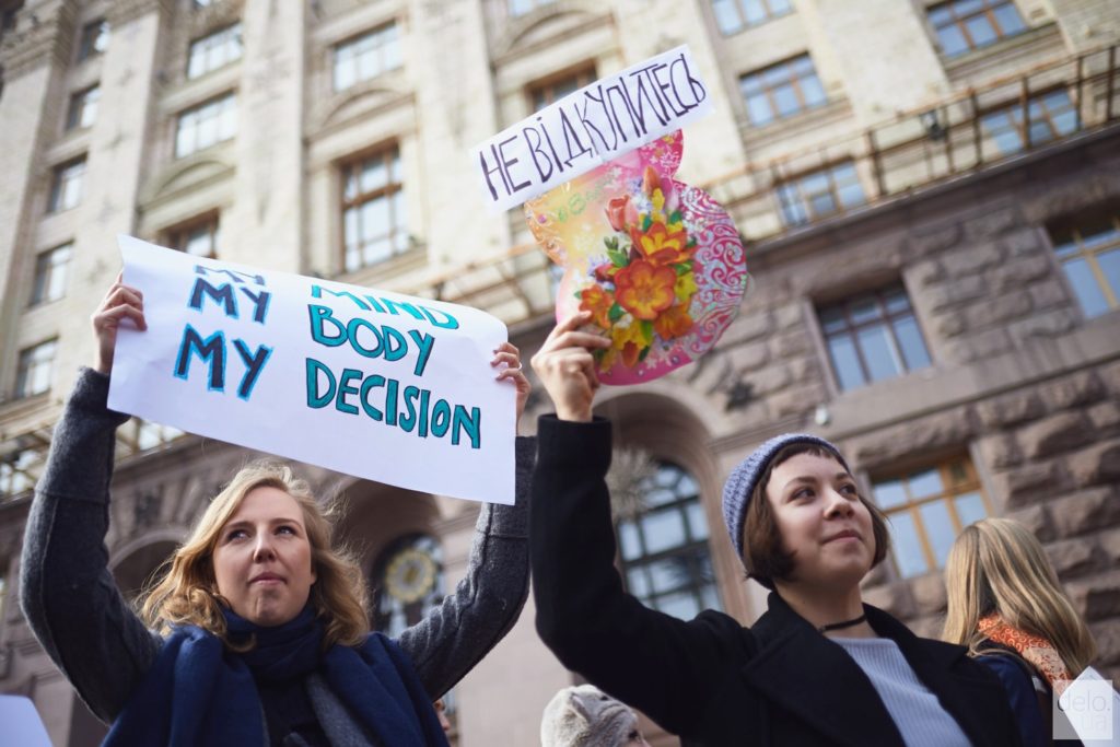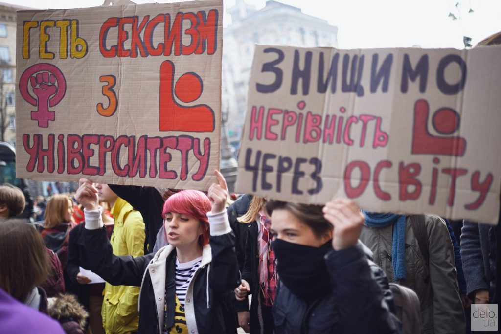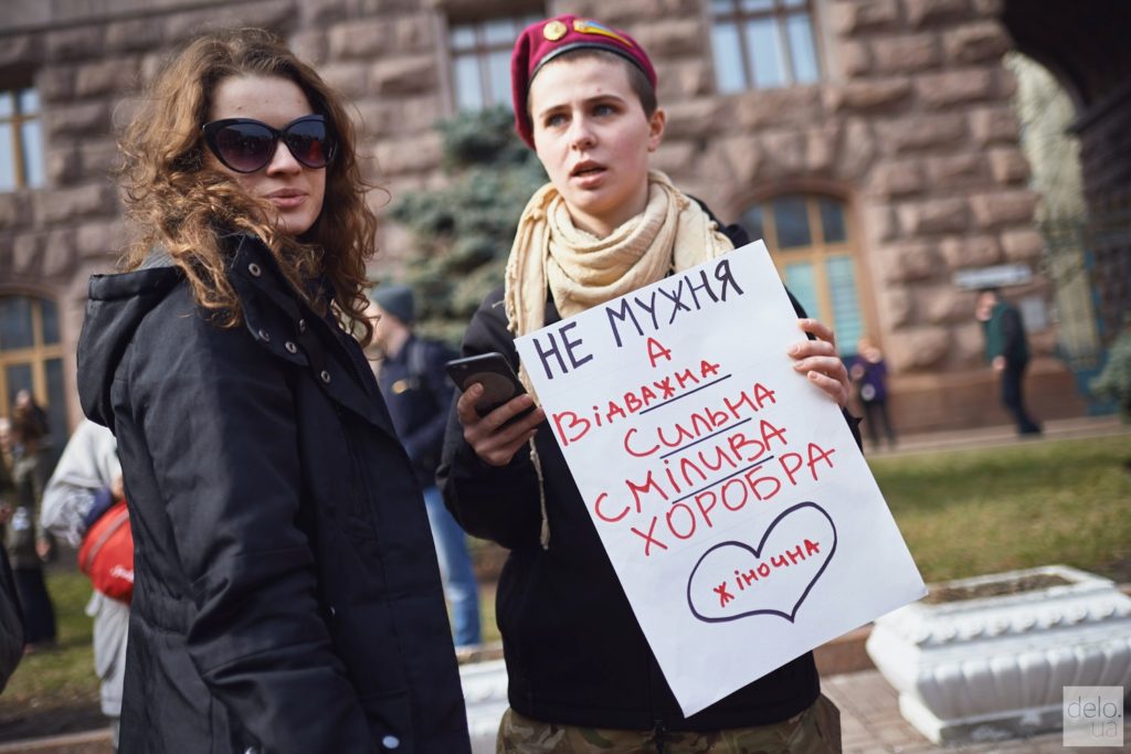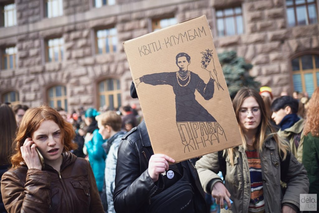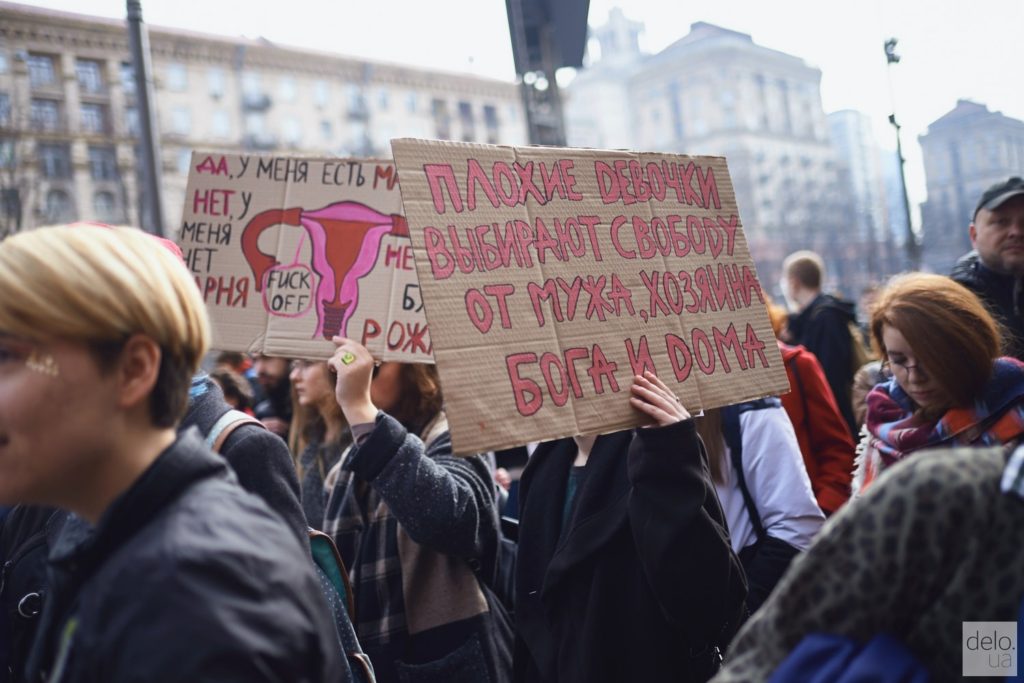 Сегодня, 8 марта, в центре Киева феминистки в честь международного женского дня организовали марш под девизом «Нет насилию всех форматов, от роддомов до военкоматов!».