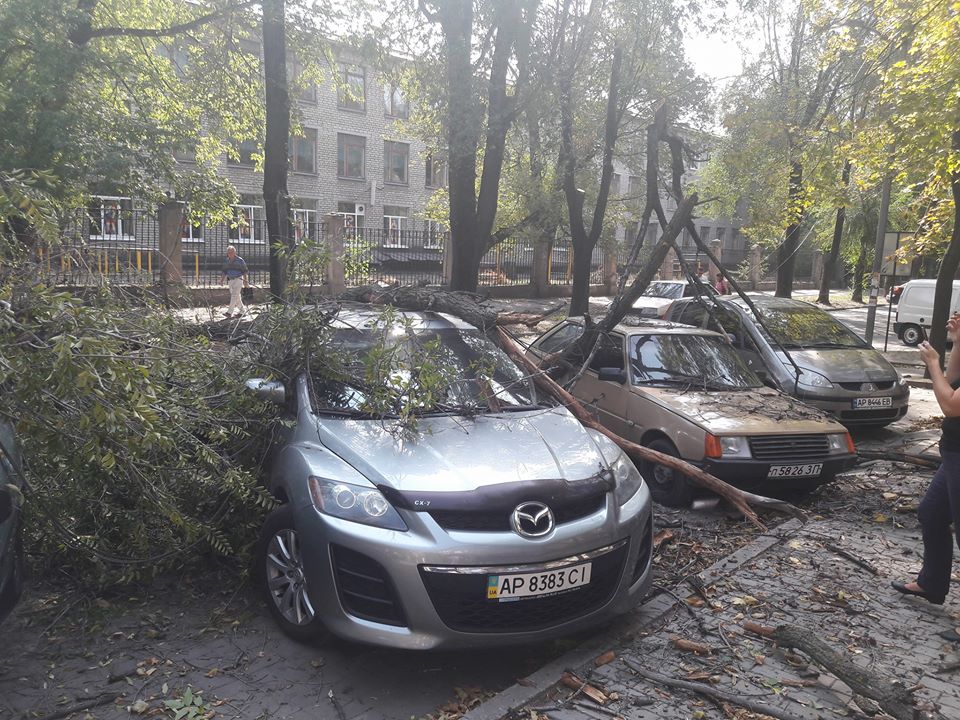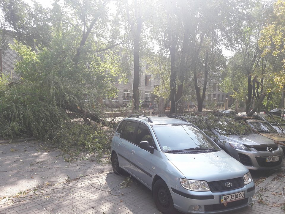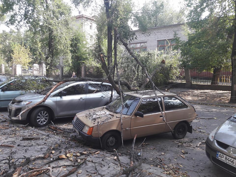 В центре Запорожья дерево упало на припаркованные авто - ФОТО
