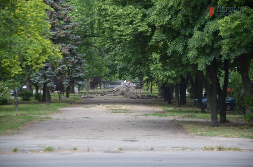 В рамках реконструкции предусмотрено удаление 41 старого дерева. Рабочие на объекты принялись избавляться от старых деревьев с самого утра. Фото с пеньками выложила в сеть запорожская экоактивистка Ирина Пирогова.