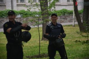 По направлению движения колонны расположены посты с сотрудниками полиции. Кроме этого полицейские для обеспечения порядка оцепили по периметру Аллею Славы. На месте работали начальник патрульной полиции Светлана Михайловская, также новый главк полиции Сергей Комиссаров.
